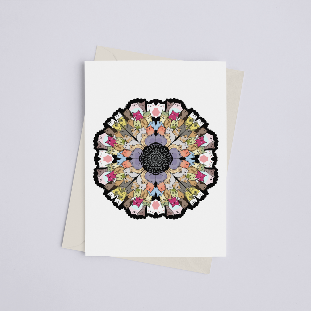 The fine print: All designs property of Black Cat Bazaar. Printed on 65+lb card stock, packaged in biodegradable cellophane & includes a matching envelope. Blank on the inside.