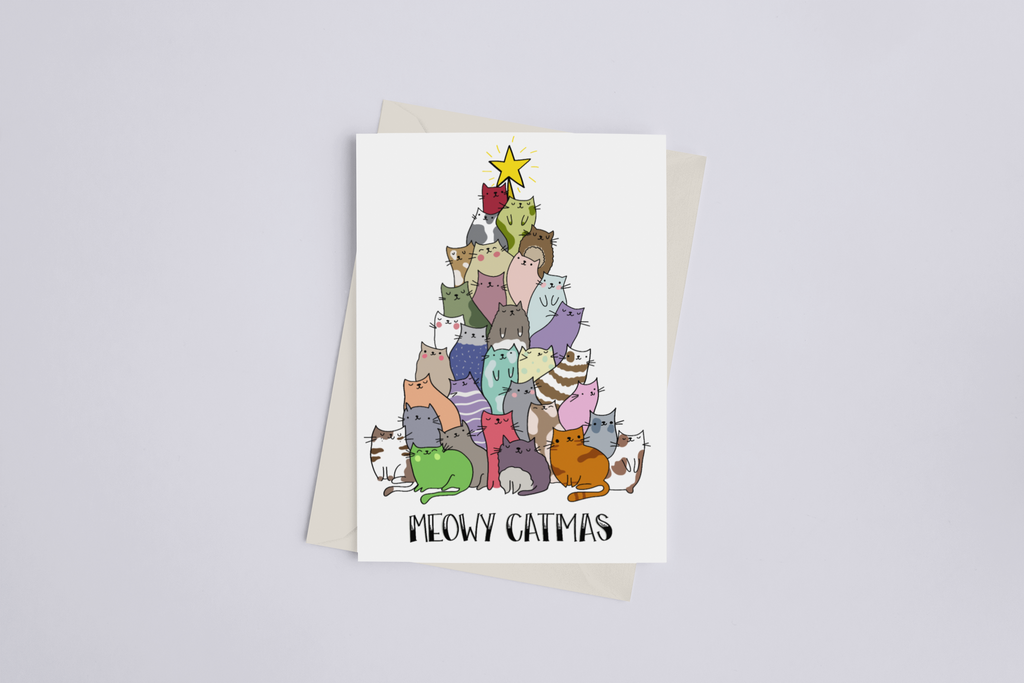 The fine print: All designs property of Black Cat Bazaar. Printed on 65+lb card stock, packaged in biodegradable cellophane & includes a matching envelope. Blank on the inside.