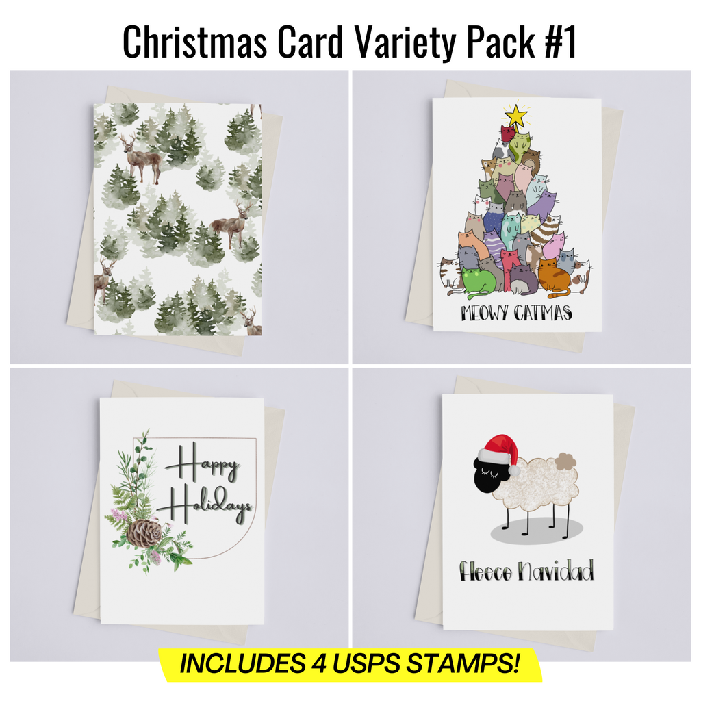Holiday Card Variety Pack #1 - Greeting Card Pack + USPS Stamps