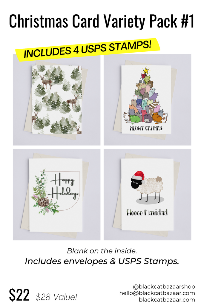 Look no further for the perfect Holiday Card Pack! AND - we've included 4 USPS stamps for you to have everything you need to actually mail cards this year.