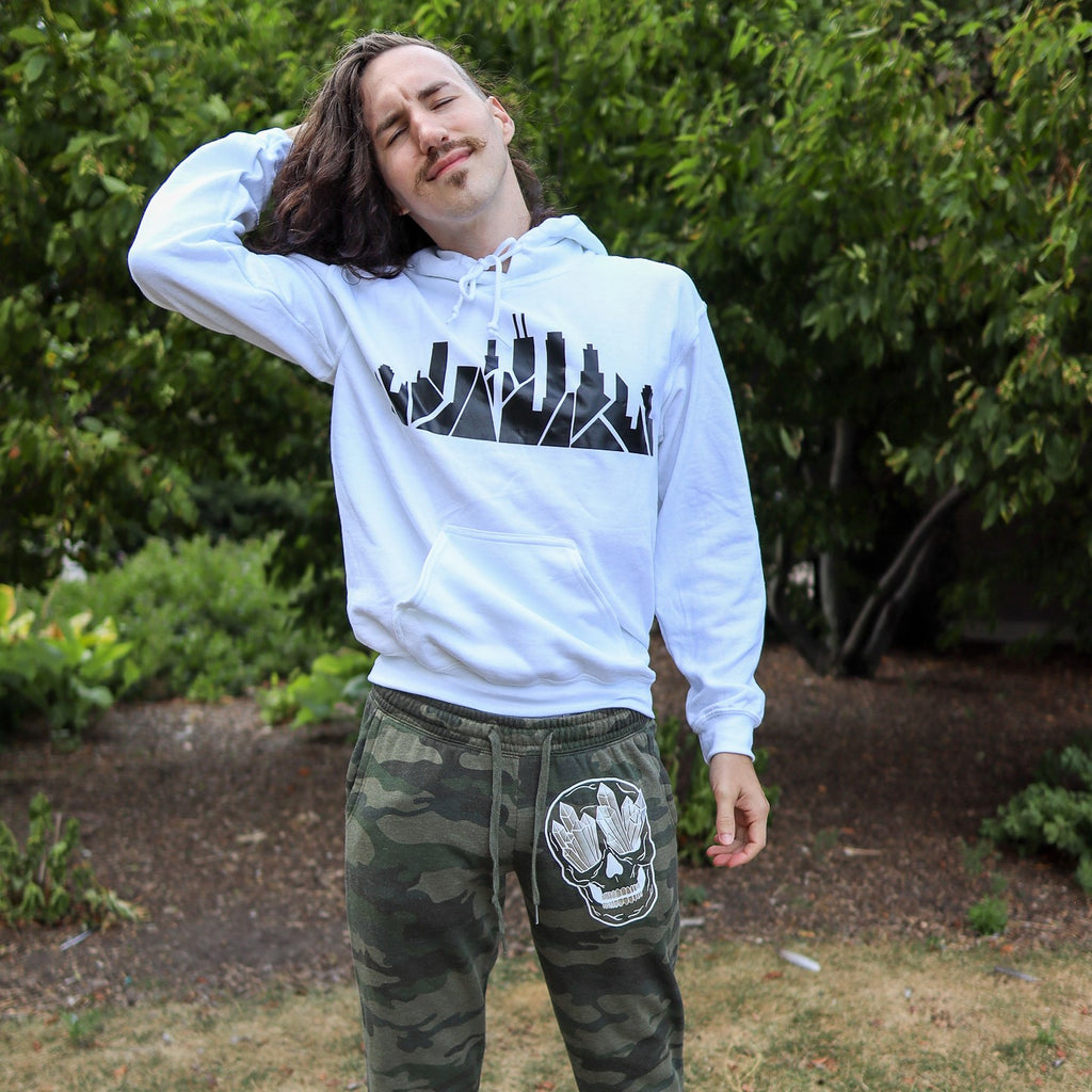 Jordan is also wearing the Inverted Chicago Skyline Hoodie with Matching Stars.