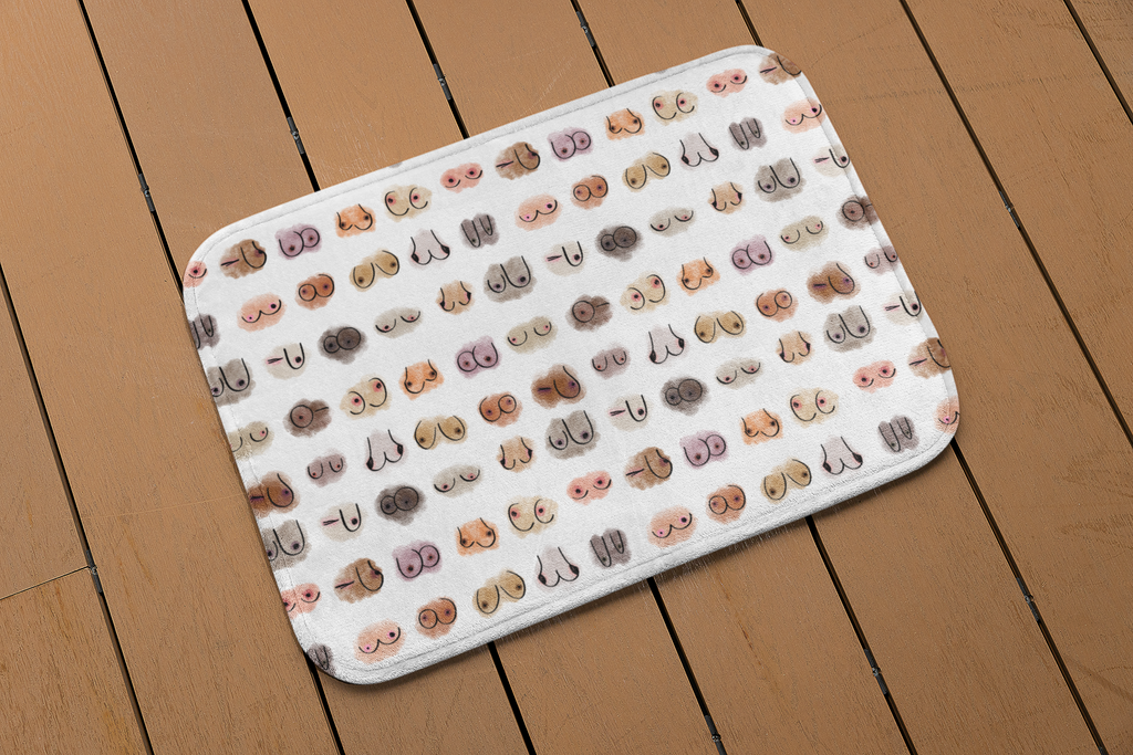 Now you can decorate your bathroom with the lovely Titty Committee! Made of soft, cozy microfiber and featuring a nonslip bottom, these mats are a perfect addition to any bathroom.