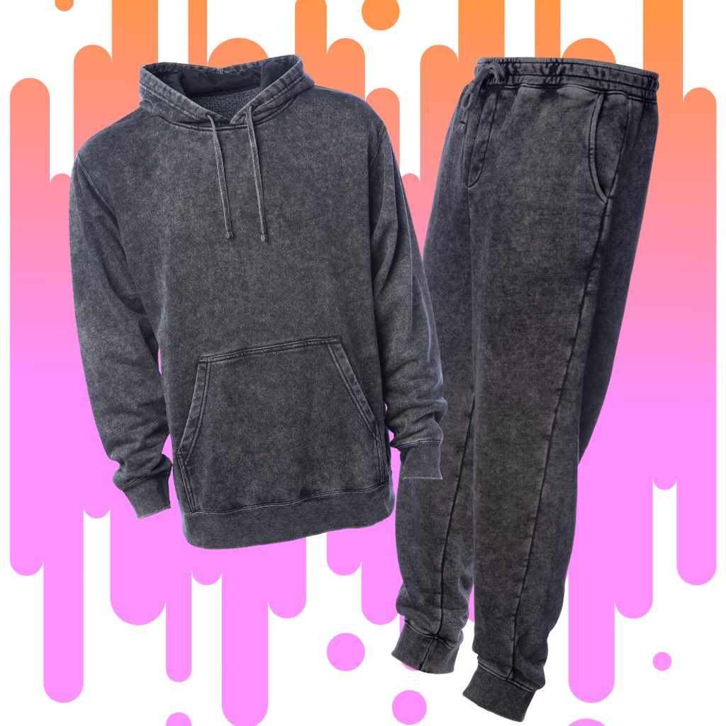 Distressed Black Mineral Wash Sweatsuit